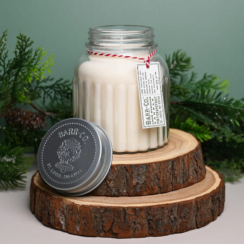 Barr-Co. candles are handcrafted in small batches using a 100% natural blend of soy and vegetable waxes, which are chosen for their ability to burn cleanly and sustain a high fragrance throw.